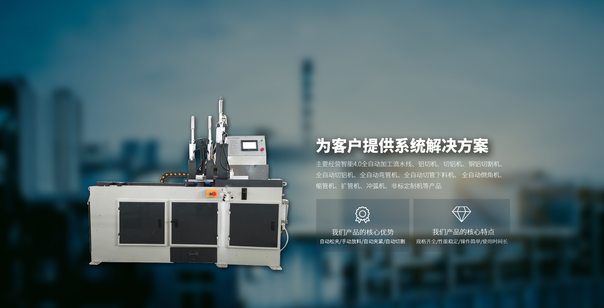 主要經(jīng)營智能4.0全自動(dòng)加工流水線、鋁切機(jī)、切鋁機(jī)、銅鋁切割機(jī)、全自動(dòng)切鋁機(jī)、全自動(dòng)彎管機(jī)、全自動(dòng)切管下料機(jī)、 全自動(dòng)倒角機(jī)、縮管機(jī)、擴(kuò)管機(jī)、沖弧機(jī)、非標(biāo)定制機(jī)等產(chǎn)品